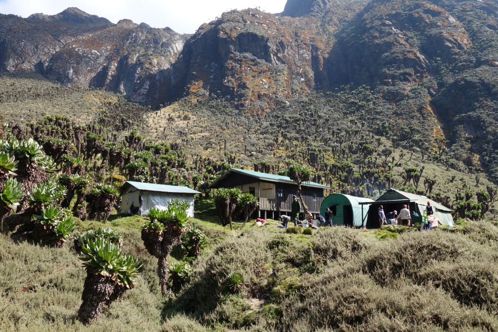 Today the first pass of the Central Circuit is crossed. First, it goes over swampy terrain, later on ladders and boulders on a hill. Here is a last beautiful view of the valley and the surrounding mountains of the Bujuku hut. After a short descent, the huge Senezia Forest with its many-colored moss areas is reached and crossed. Climbing steadily over a boulder field, you reach the Scott Elliot Pass. Shortly before reaching the Kitandara hut offers a wonderful view of the Lake Kitandara and the surrounding mountains. After a 4-5 hour hike, the Kitandara Hut is reached. Overnight at the Kitandara Hut.
